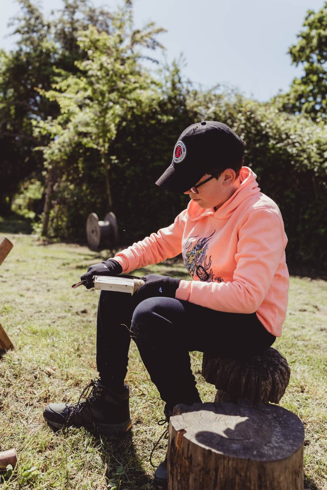 Activities can include: making dens, looking at insects, collecting sticks, tying knots, building and enjoying a campfire, whittling wood or just playing in mud!